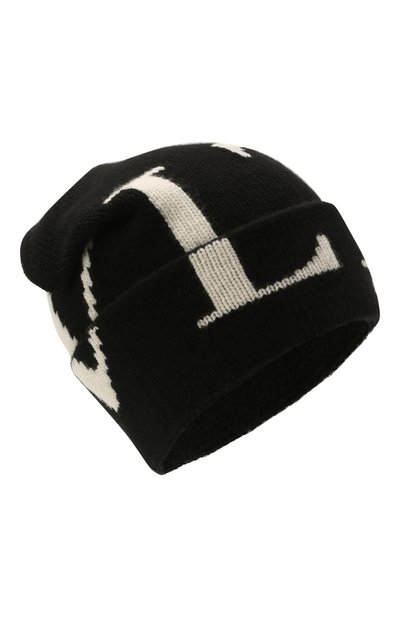Для изготовления черной шапки с крупным белым узором в виде архивной эмблемы VLTN мастера марки использовали тонкую шерстяную пряжу. В нити добавили нежные волокна кашемира, благодаря которым аксессуар особенно хорошо сохраняет тепло. Дополнительную защиту от холода и ветра обеспечивает широкий отворот.
