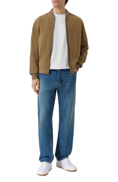 Для пошива базовой футболки использовали мягкое джерси из органического хлопка. Единственный декор – фирменная эмблема, вышитая нитью в тон.