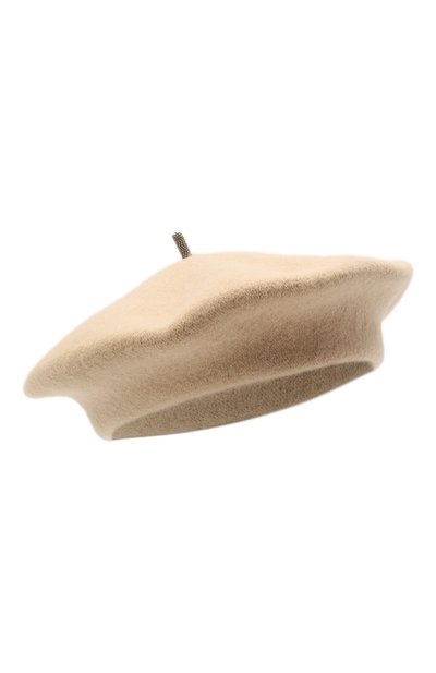 Светло-бежевый берет — один из тех аксессуаров, который автоматически делает образ поэтичным. Для создания модели мастера марки использовали мягкую тонкую шерсть. Ее длинные пористые волокна хорошо удерживают тепло, а небольшой ворс формирует преграду для ветра и влаги. Короткий кончик на макушке украсили цепочками мониль.
