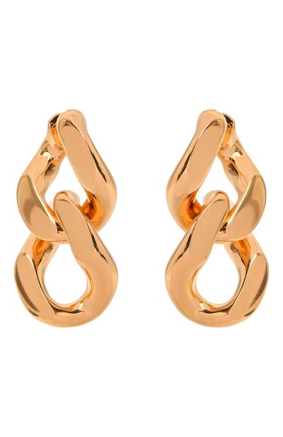 Серьги в виде двух массивных звеньев цепи, соединенных панцирным плетением, будут органично смотреться в образе любой формальности. Для создания модели ювелиры марки использовали серебро 925 пробы, покрытое тонким слоем 18-каратного золота. Красота аксессуара в полной мере раскрывается на свету.