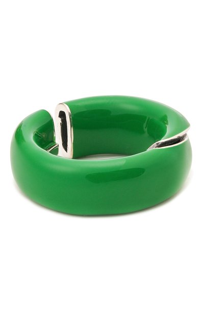 Кольцо изумрудного оттенка воплощает в себе интеллектуальный минимализм, который исповедуют в марке. Разнообразить классическую форму помогли деликатно расставленные акценты. Для изготовления аксессуара мастера бренда использовали серебро 925 пробы с глянцевым эмалевым покрытием.