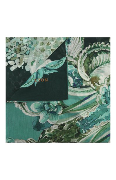 Зеленый нагрудный платок может стать акцентом в офисном комплекте. В этом ему помогает крупный принт в виде люстр, на создание которого дизайнеров марки вдохновили работы муранских стеклодувов. Для изготовления паше использовали тонкий хлопок. Волокна шелка в составе материала придали изделию деликатный блеск.