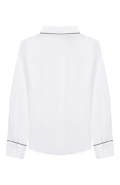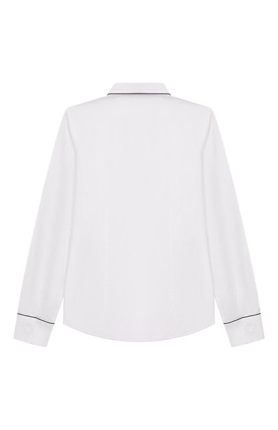 Для пошива блузки с контрастным кантом использовали тонкий поплин. Материал, сотканный из длинноволокнистого хлопка, приятен на ощупь, поэтому в вещи будет комфортно в течение всего дня.