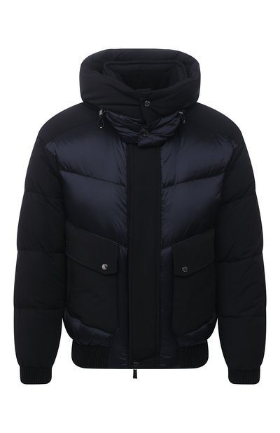 При работе над темно-синим бомбером из коллекции сезона осень-зима дизайнеры бренда взяли за основу проверенную временем игру на контрасте фактур, выбрав для изготовления модели комбинацию матового и шелковистого полиамида. Легкий слой отборного пуха хорошо сохраняет тепло, не утяжеляя вещь, а объемный капюшон защищает от ветра.