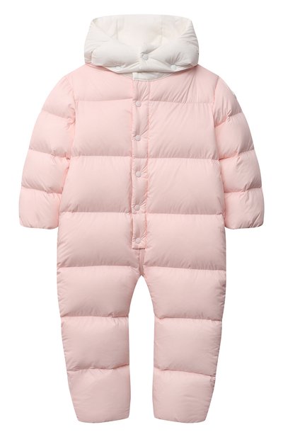 Нежно-розовый комбинезон с белым капюшоном получился одновременно легким и теплым. На это работают материалы. Мастера марки выполнили модель из непродуваемого нейлона Longue Saison, который легко очищается от загрязнений. Комфортную температуру обеспечивает отборный гусиный пух, равномерно распределенный по стеганым камерам.