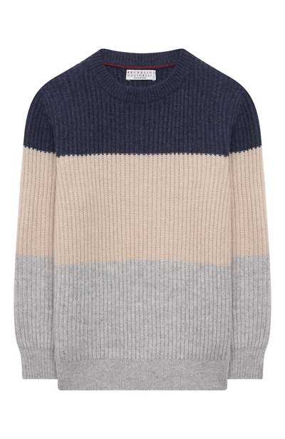Мастера марки изготовили свободный полосатый свитер из мягкой легкой пряжи. Гипоаллергенная шерсть в ее составе отвечает за эффективную циркуляцию воздуха, тонкий кашемир делает материал теплее и нежнее, а прочные шелковые нити предотвращают появление катышков.