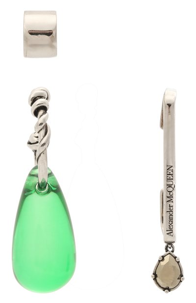 Ансамбль из трех серег поможет сформировать комплект по принципу деконструкции. Основу каждого изделия произвели из легкого сплава, который не вызывает аллергию, а разные по форме вставки выполнили из отполированных и ограненных кристаллов.