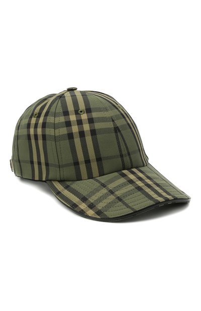 Зеленую бейсболку в крупную фирменную клетку мастера марки сшили из прочной хлопковой парусины. Головной убор из такого материала хорошо пропускает воздух, почти не мнется и быстро восстанавливает форму после хранения в сложенном виде. Края широкого изогнутого козырька укрепили узким кантом из гладкой матовой кожи ягненка.