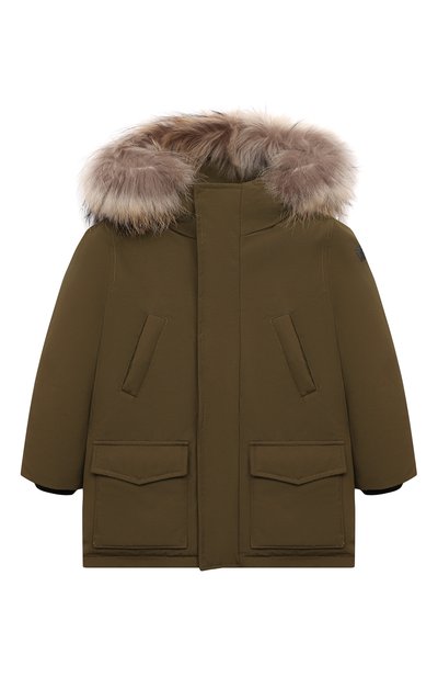Для пошива парки цвета хаки мастера бренда использовали прочный материал, который не промокает и защищает от ветра, а для утеплителя — отборные пух и перо. Дополнительный комфорт в непогоду обеспечивают трикотажные манжеты, капюшон со съемной меховой оторочкой и высокой стойкой. Для удобства у изделия предусмотрели четыре кармана.