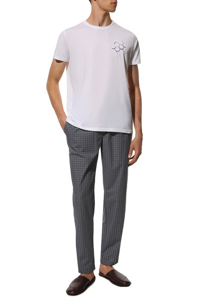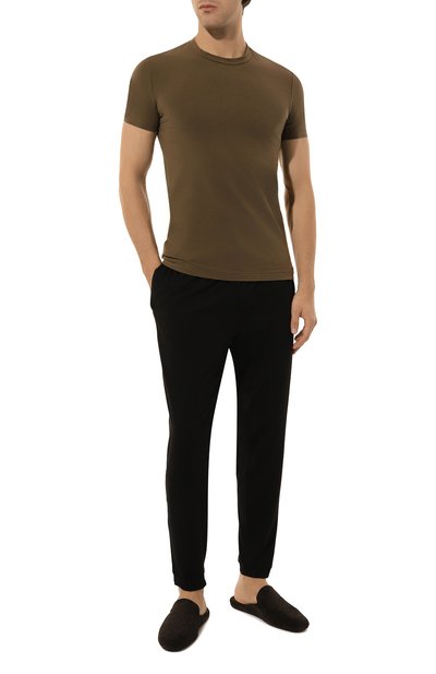 Домашние туфли с подошвой, которая расширяется к пятке, выполнили из замши. Закрытый округлый мыс модели подчеркнули рельефной каймой, а союзку дополнили двумя кисточками.