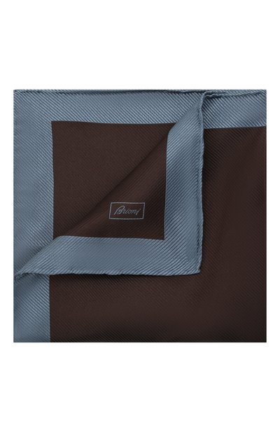 Платок паше оттенка крепкого кофе удачно дополнит сдержанный образ. Для изготовления модели мастера марки использовали мягкий, но при этом прочный фактурный шелк с деликатным блеском. Аксессуар с широким темно-голубым кантом по краям подшили вручную.