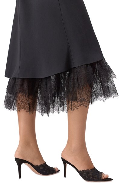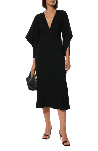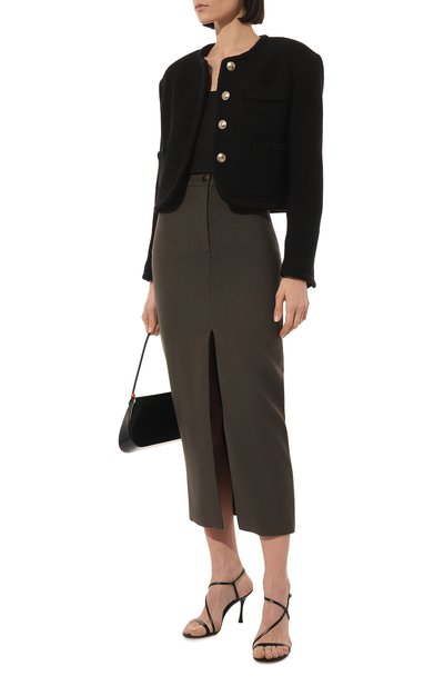 Несмотря на черный цвет босоножки Stiletto из осенне-зимней коллекции 2021 года практически незаметны: на ноге их удерживают узкая перемычка и регулируемый ремешок с золотистой фирменной пряжкой. Джанвито Росси выбрал для пошива пары гладкую лаковую кожу ручной выделки. Таким же материалом обтянули высокий тонкий каблук, который и дал название модели.