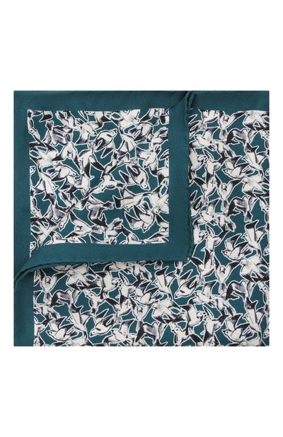 Изумрудно-зеленый платок паше мастера марки выполнили из мягкого, но прочного шелкового твила. Этот материал с деликатным матовым блеском почти не мнется и хорошо драпируется, долго сохраняя заданную форму. Аксессуар с широким однотонным кантом украсили пестрым принтом в виде птиц.