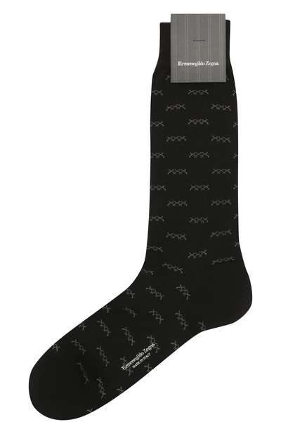 Носки с высоким паголенком изготовили из хлопкового трикотажа с добавлением нейлона и стрейчевых волокон. Изделие с широкой манжетой украсили мелким жаккардовым паттерном.