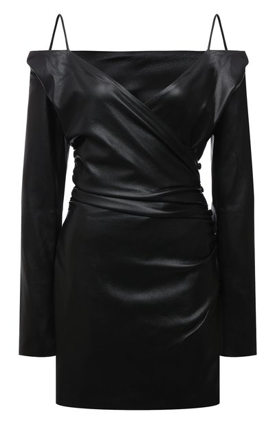 В сезоне осень-зима дизайнеры марки представили свое видение маленького черного платья. Приталенную модель с длинными рукавами и открытой линией плеч дополнили плотной драпировкой на талии и двумя узкими бретелями. Для пошива изделия использовали фирменную веганскую кожу, при производстве которой не примен яют химикаты, а продуманная логистика помогла уменьшить углеродный след.