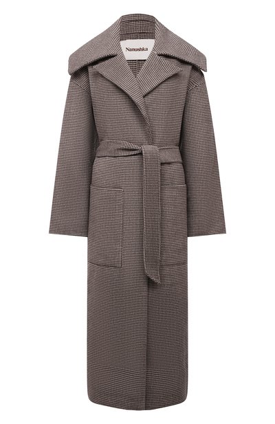 Узор пье-де-пуль и гипертрофированный отложной воротник компенсируют лаконичный серый цвет пальто из осенне-зимней коллекции. Мастера марки сшили модель с запахом и широким поясом из мягкой пушистой шерсти, которая защищает от ветра и холода. Нити шелка в составе не дают изделию потерять форму со временем.