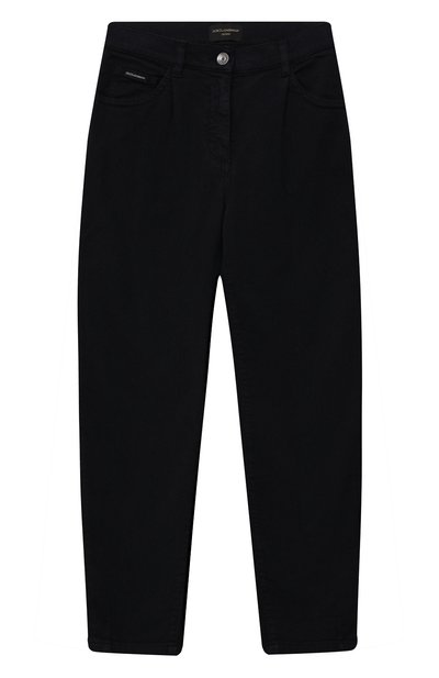 В джинсах с высокой посадкой тщательно поработали над комфортом. Защипами в бедрах добавили немного свободы, в состав плотного хлопка включили эластан, а в поясе предусмотрели внутреннюю резинку, поэтому модель не сковывает движения. Вещь окрасили в готовом виде, за счет чего ее темно-синий цвет по лучился неоднородным.