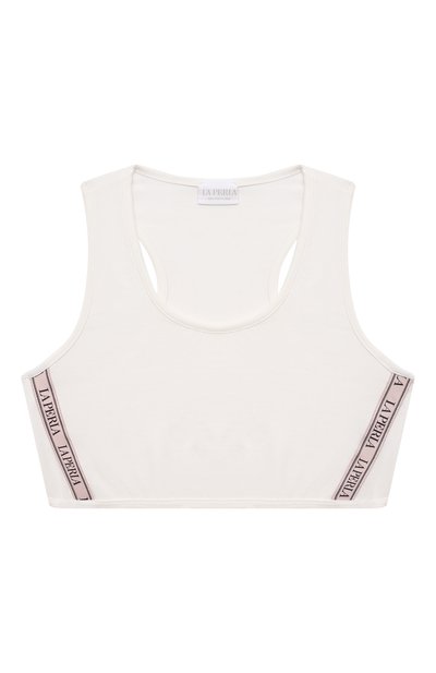 Мастера марки сшили этот белый бра-топ из нежного хлопкового трикотажа, который не вызывает аллергию. В состав материала включили эластановые волокна, поэтому модель с брендированными боковыми лентами отлично тянется, мягко облегая тело.