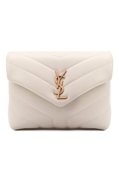 Кремовая небольшая сумка Loulou Toy из коллекции сезона осень-зима сшита из мягкой стеганой кожи. В сумку с длинным плечевым ремнем, двумя отделениями и карманом на молнии поместятся смартфон, кошелек и паспорт. На клиновидном широком клапане — пряжка-монограмма Кассандра, сложенная из инициалов Ива Сен-Лорана.