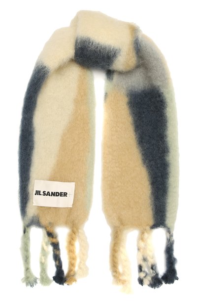 Мастера бренда изготовили шарф из пушистой ткани на основе нежного фактурного мохера. Благодаря природным свойствам этих тонких длинных волокон мягкий материал лучше прочих сохраняет тепло и защищает от ветра. Спокойная песочно-синяя палитра делает аксессуар с бахромой универсальным солдатом в гардеробе.