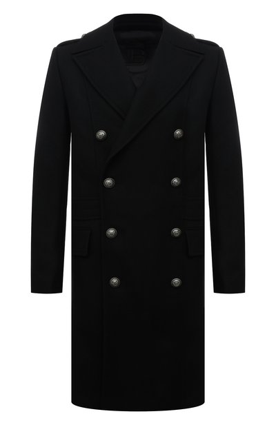 В дизайне черного пальто Оливье Рустен сочетал свои любимые спецэффекты: четкая линия плеч, широкие лацканы и два ряда фирменных пуговиц с геральдическими знаками. Для пошива прямой модели из осенне-зимней коллекции мастера марки, основанной Пьером Бальманом, использовали мягкую фактурную шерсть. Чтобы сделать изделие прочнее, в состав материала добавили тонкие волокна полиамида.
