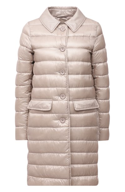 Непромокаемый материал, легкий утеплитель и удобный крой — три ключевых составляющих идеальной верхней одежды. Жемчужно-бежевый пуховик из осенне-зимней коллекции полностью соответствует всем условиям. Для пошива модели с отложным воротником мастера марки использовали гладкий шелковистый нейлон, который в сочетании с практически невесомым наполнителем из гусиного пуха и пера делает вещь максимально комфортной.