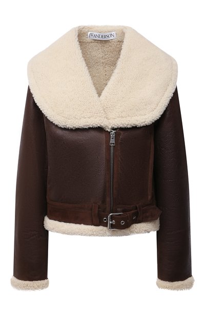 Создавая дубленку из осенне-зимней коллекции, Джонатан Андерсон взял за основу косуху, но сделал ее женственнее, заменив лацканы на широкий шалевый воротник. Эта белая меховая деталь, как и кант манжет и пояса, играет на контрасте с гладкой маслянистой поверхностью дубленой овчины, окрашенной в оттенок горького шоколада. В тон ей выполнили отделку швов и регулируемый пояс из мягкой бархатистой замши.