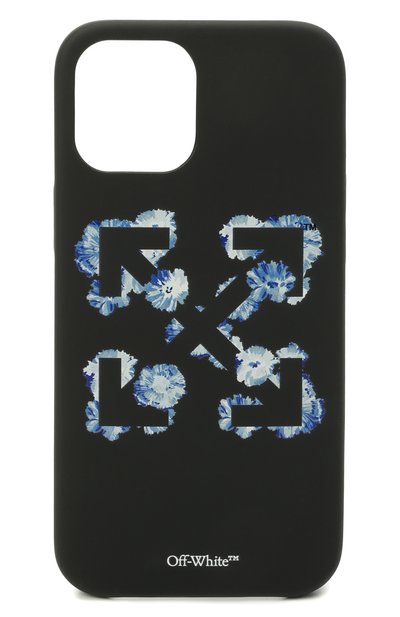 Чехол из гибкого полимера сдержанного черного цвета плотно прилегает к iPhone 12 Pro Max, защищая его от влаги и пыли. Борта аксессуара слегка выступают над экраном, поэтому сенсор не потрется о твердые поверхности. Модель с доступом к элементам управления декорировали переосмысленной эмблемой бренда. Принт в виде двух перекрещивающихся стрелок дополнили изображением синих цветов.