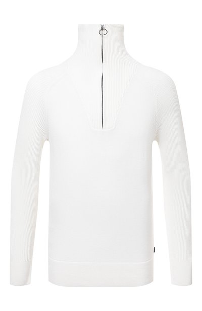 У свитера из осенне-зимней коллекции много плюсов: и нейтральный кремовый оттенок, и лаконичный силуэт, и молния спереди, за счет которой удобно надевать и снимать вещь. Но основное достоинство — материал. Для изготовления модели с воротником-стойкой, как у водолазки, мастера марки использовали мягкую шерсть. За счет природных свойств волокон изделие из такой пряжи хорошо пропускает воздух, но при этом задерживает тепло.