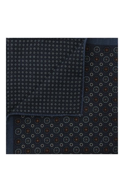 Для изготовления темно-синего нагрудного платка использовали мягкий немнущийся шелк с крупным цветочным паттерном с одной стороны и мелким — с другой. Края квадратного паше обработали вручную, поэтому вещь не деформируется со временем. Такой аксессуар станет завершающим штрихом элегантного образа.