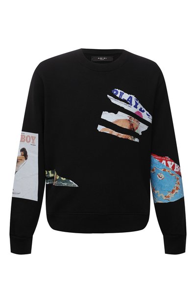 Майк Амири любит придавать своей одежде сходство с винтажными вещами. В случае с этим черным свитшотом отсылками к прошлому стали стилизованные под потертые от времени обло жки Playboy: реалистичный принт выглядит так, словно модель обклеили старыми вырезками. Изделие из мягкого плотного хлопка терри с характерной фактурной изнанкой вошло в капсульную коллекцию, созданную дизайнером вместе с командой журнала.