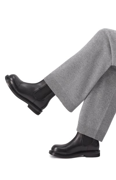 Для пошива челси Trace с прорезиненным отрезным мысом и традиционными эластичными вставками по бокам использовали веганскую кожу Alter Mat. Модель на массивной подошве Vibram® с протектором дополнена брендированной петлей на заднике.