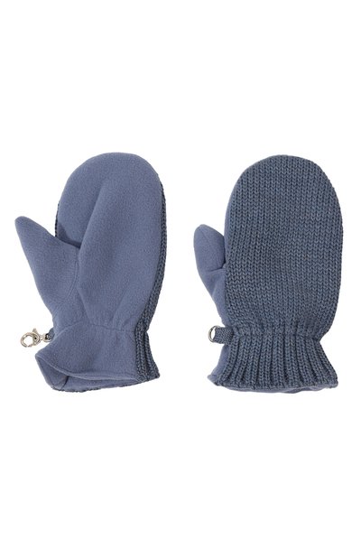 Для производства темно-синих варежек мастера марки использовали мягкую шерстяную пряжу, которая сохраняет оптимальную температуру. Тыльная часть из прочного полиэстера не собирает на себя снег. Чтобы аксессуар не потерялся, на одном изделии предусмотрели карабин, а на другом — кольцо.
