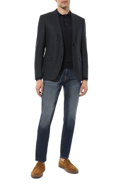 Темно-синее поло из осенне-зимней коллекции ставит знак равенства между элегантностью, практичностью и комфортом. Для изготовления модели использовали нежный кашемир, тончайшие волокна которого поддерживают оптимальную для тела температуру. Шелк в составе пряжи делает вещь прочнее и добавляет ей легкий блеск. Короткая молния помогает отрегулировать глубину горловины. Роль декора отвели жаккардовому логотипу марки сбоку.