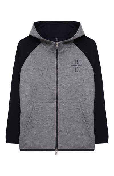 Серая толстовка с капюшоном позволит с комфортом гулять даже в прохладную погоду. Модель сшили из двойного хлопкового футера с гладкой поверхностью как с внешней, так и с внутренней стороны. Материал не раздражает кожу, не вызывает аллергию, а благодаря плотности хорошо сохраняет тепло. За свободу движения отвечают рукава реглан, выделенные темно-синим цветом.