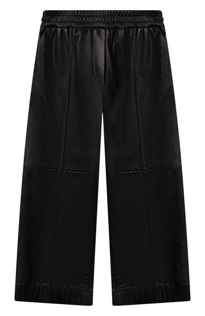 Спокойный черный цвет задает тон брюкам, но модель комфортного прямого не выглядит просто. Мягкий матовый блеск очищенному от броского декора изделию придает характерная фактура мягкой эластичной кожи наппа, которая считается особенно нежной и приятной на ощупь. Широкий пояс помогает подобрать посадку точно по фигуре.