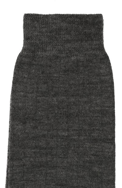 Высокие носки с раздвоенным мысом, характерным для фирменной обуви Tabi, выполнили из шерстяного трикотажа, укрепленного полиамидом. Паголенок сзади дополнили небольшим стежком.