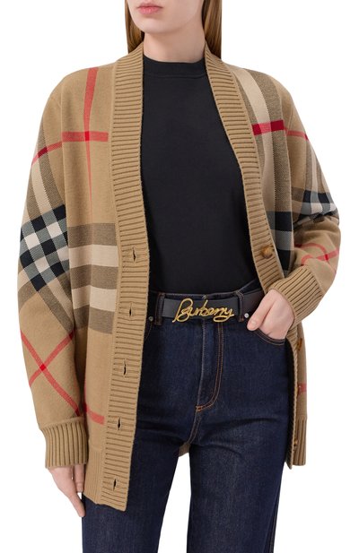 О принадлежности черного узкого ремня бренду нетрудно догадаться по фигурной пряжке. Узкую фурнитуру в виде резного логотипа марки выполнили из легкого ювелирного сплава с золотистым гальваническим покрытием, отполированным до блеска. Для изготовления аксессуара использовали фактурную эластичную кожу.
