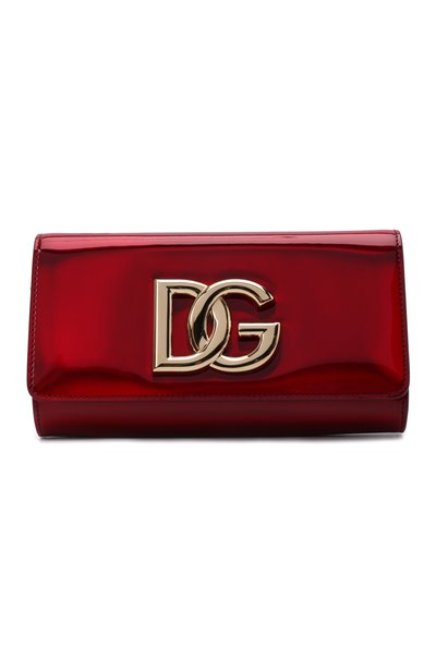 Небольшой прямоугольный клатч 3.5 из осенне-зимней коллекции легко станет главным акцентом сдержанного образа. И дело не только в насыщенном красном цвете, но и в материале: модель выполнили из гладкой кожи с глянцевым голографическим покрытием, переливающимся в лучах света. Доменико Дольче и Стефано Габбана декорировали широкий клапан крупной золотистой DG-моног раммой из полированного металла. Если пристегнуть регулируемый ремень, аксессуар можно носить и на плече.