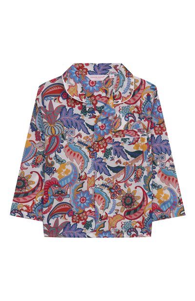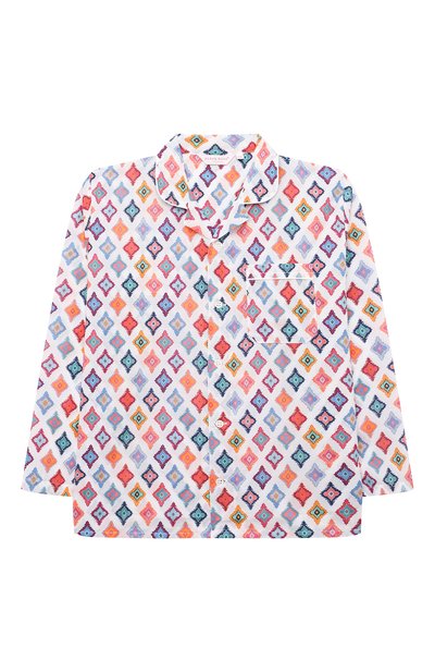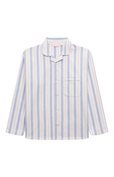 Для пошива пижамы в разноцветную полоску использовали мягкий хлопковый батист. Рубашку с отложным воротником дополнили нагрудным карманом, а брюки –эластичным поясом.