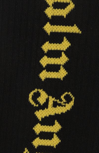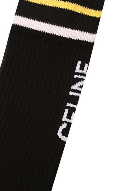 Для изготовления однотонных носков использовали мягкий хлопок с добавлением стрейчевых нитей и прочного нейлона. Высокий паголенок декорировали крупным вертикальным логотипом, выполненным в технике интарсии.