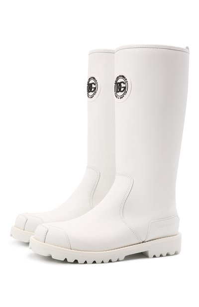 Для пошива белых сапог мастера марки использовали мягкую прочную кожу. Материал не требует особенного ухода: чтобы поддержать опрятный вид, достаточно протереть поверхность влажной тканью. Чтобы изделие не скользило во время дождя, пластичную подошву дополнили глубоким протектором.