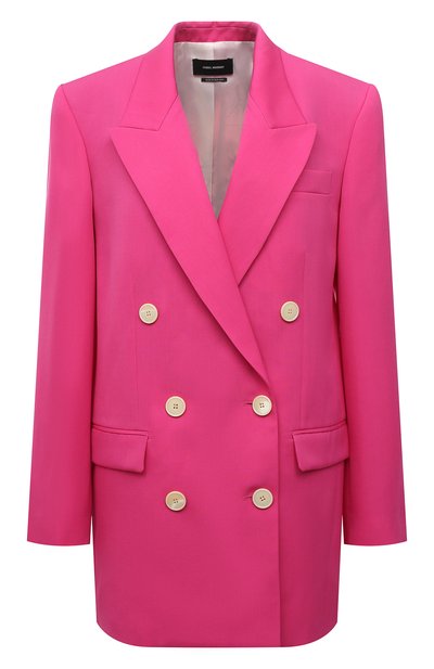 Двубортный жакет насыщенного розового оттенка станет легким и верным способом ввести яркий цвет в повседневный гардероб. Изабель Маран выбрала для пошива модели из осенне-зимней коллекции мягкую тонкую шерсть. Материал практически не мнется и не требует особенного ухода, поэтому вещь будет выглядеть безупречно весь день.