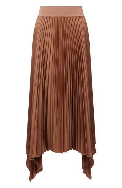 Нейтральный бежевый цвет плиссированной миди-юбки дизайнеры марки, основанной Джозефом Эттедги, компенсировали выбором материала. Для пошива модели с асимметричным подолом, добавляющим вещи азарта, использовали легкий атлас с характерным блеском. Изделие из осенне-зимней коллекции дополнили широким эластичным поясом.