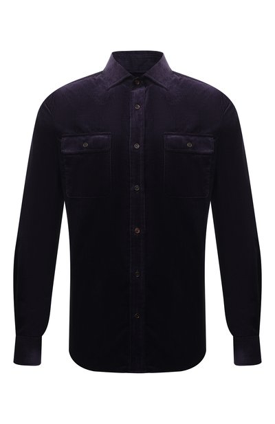 В рубашке из осенне-зимней коллекции Ральф Лорен сделал ставку на материал. Модель сшили из плотного вельвета с характерным легким блеском, за счет которого насыщенный фиолетовый цвет ткани заиграл полутонами. Такая вещь гармонично завершит повседневный образ из белой футболки, темно-синих брюк и лоферов.