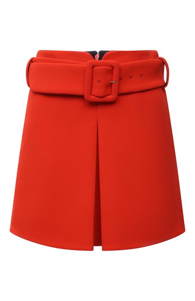На показе осень-зима 2021 года Донателла Версаче сочетала ярко-оранжевую мини-юбку с кроп-топом, колготками и туфлями в схожей гамме, а наши стилисты предлагаю сыграть на контрасте оттенков, дополнив образ черными вещами, обувью и аксессуарами. Для изготовления модели с глубокой шлицей и широким поясом с прямоугольной пряжкой использовали мягкое вискозное кади, которое практически не мнется и не теряет форму после стирок.