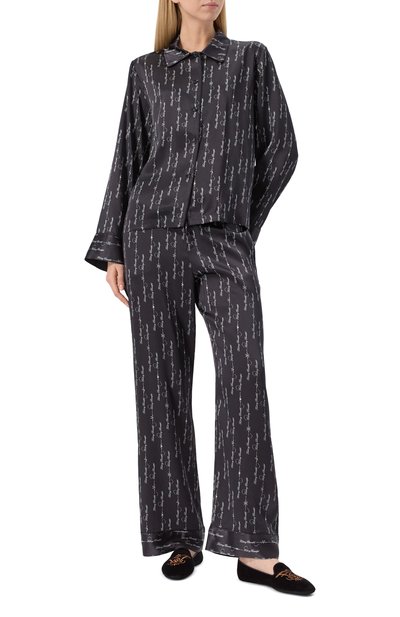 Для изготовления домашних туфель универсального черного цвета мастера марки использовали мягкую зерненую кожу. Верх из нее частично задрапировали широкими брендированными лентами, ставшими визитной карточкой для вещей из линии Woody. Тапочки с закрытым мысом дополнили гибким протектором с рифлением, усиливающим сцепление с гладким полом.