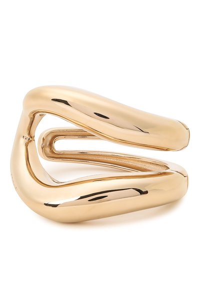 Чтобы привлечь внимание, браслету из прочного ювелирного сплава не нужен броский декор. С этим справляется асимметричный силуэт, повторяющий очертания женских губ. Впервые детали такой формы появились у сумок из линии Kiss. Благодаря покрытию тонким слоем золота украшение сияет теплым светом.
