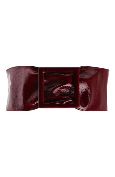Широкий бордовый пояс из фактурной прочной кожи с глянцевым блеском не только подчеркнет талию, но и поможет правильно расставить акценты в образе. Высокое напряжение активного цвета снимут наряды нейтральных оттенков. Гибкий аксессуар дополнен крупной квадратной пряжкой в тон.