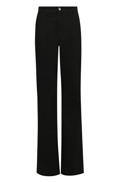 В черных джинсах из осенне-зимней коллекции стилеобразующим элементом стал силуэт. Расклешенный крой с посадкой на талии сам по себе позволяет модели оказаться в центре внимания. Для пошива изделия Раф Симонс выбрал плотный прочный хлопок, который сохраняет отчетливую форму даже в движении.